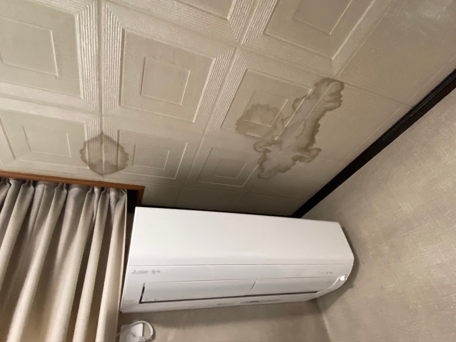 雨漏りによって天井が水分を含むと、たわみが発生することがあります。特に天井材が湿って膨らんでいる場合は、内部に水が侵入している可能性が高いです。
