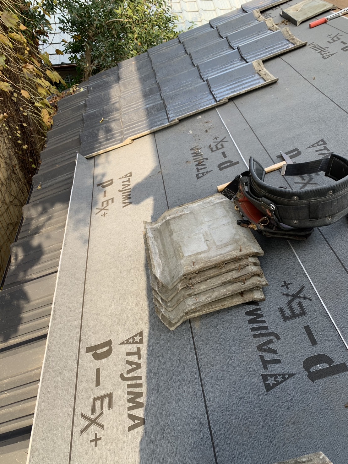 新しい防水シートを敷いて雨漏りを防ぎます。